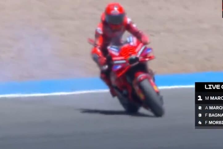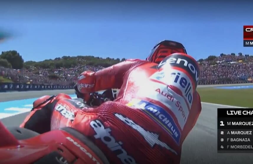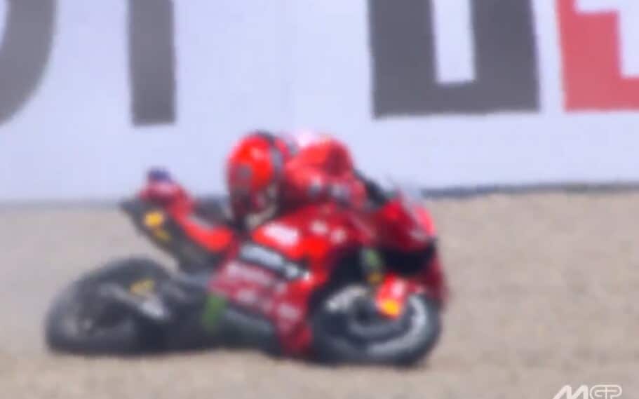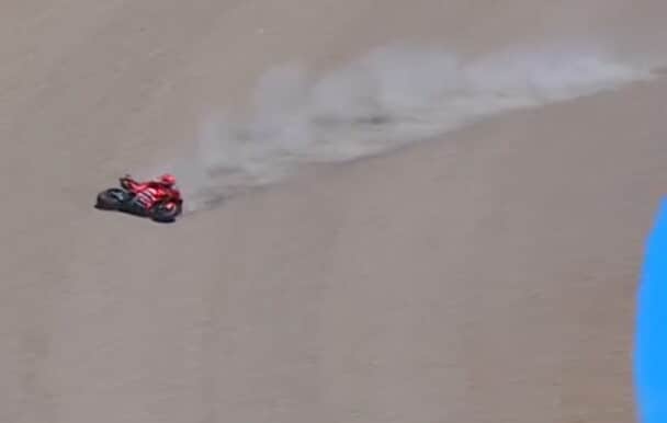 Dopo 3 giri dall'inizio della gara domenicale il pilota Ducati Factory scivola e finisce fuori pista. Riesce comunque a concludere la gara seppur con la moto parzialmente distrutta