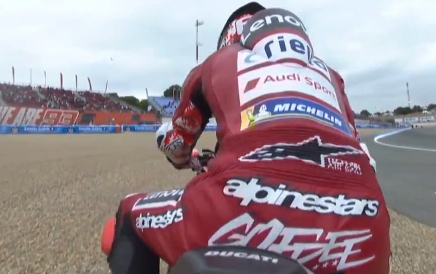 Il pilota italiano sbaglia la staccata in curva 1 e deve allungare la traiettoria per fermare la Ducati