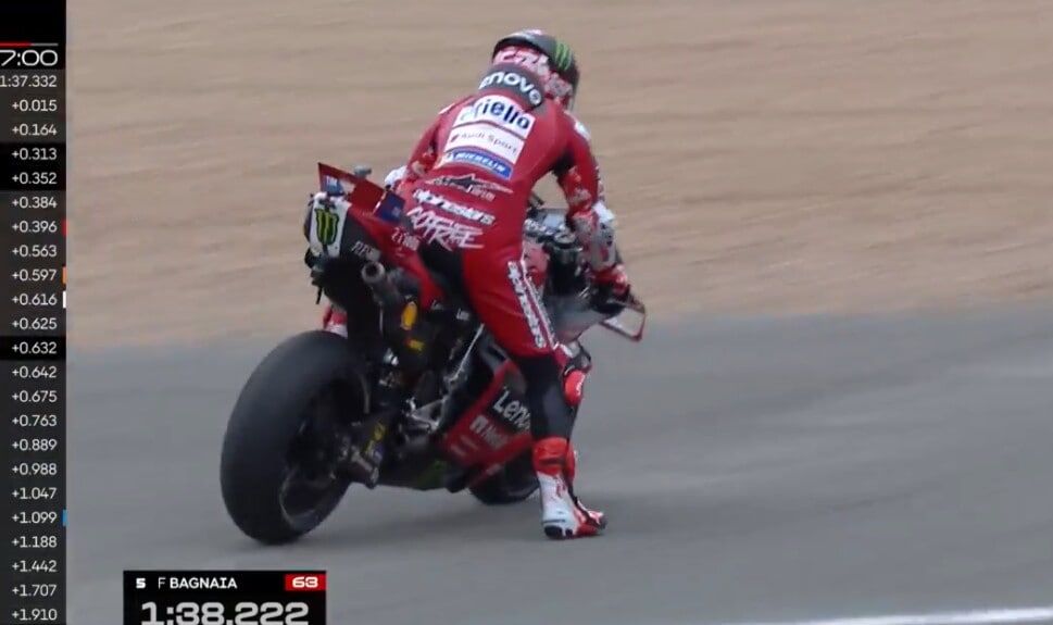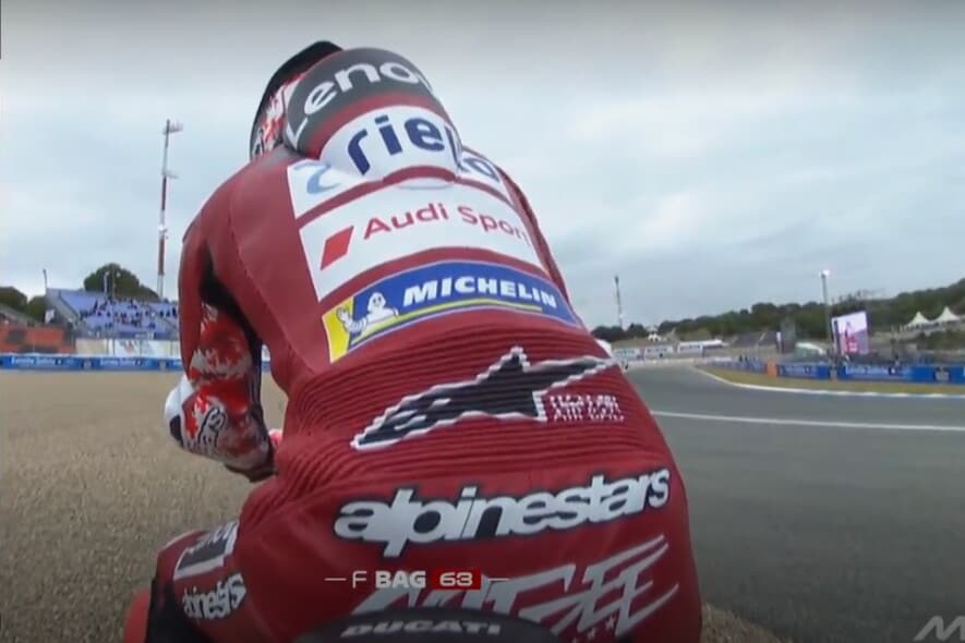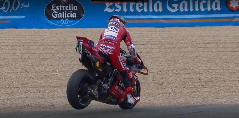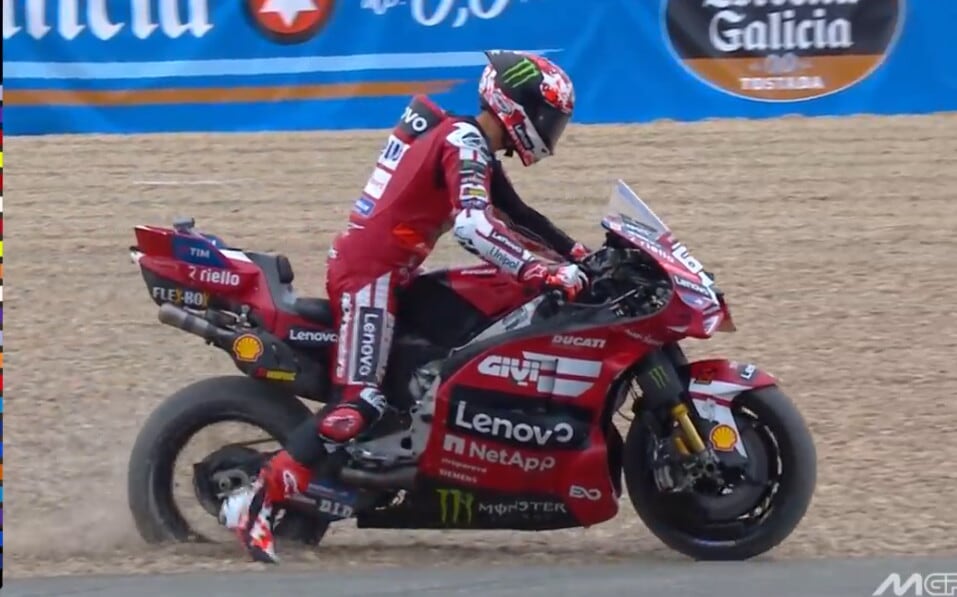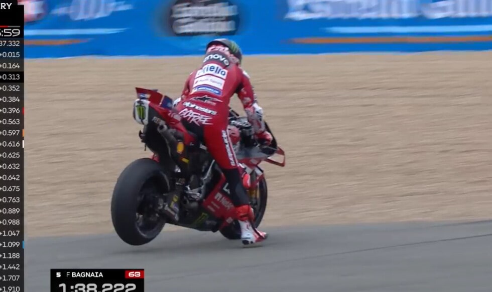 MotoGP Jerez, paura per Bagnaia: va lungo e finisce nella ghiaia