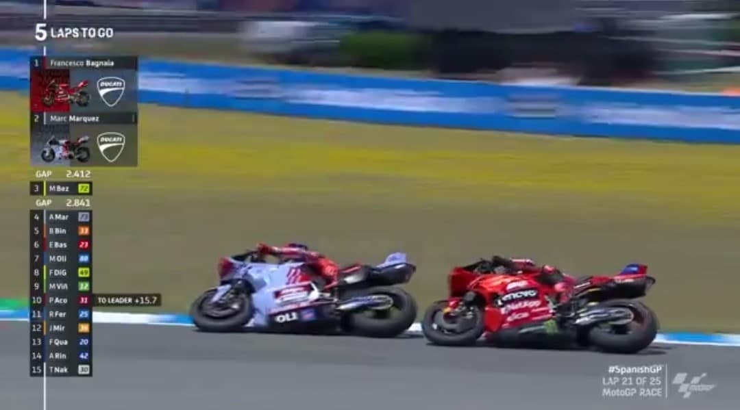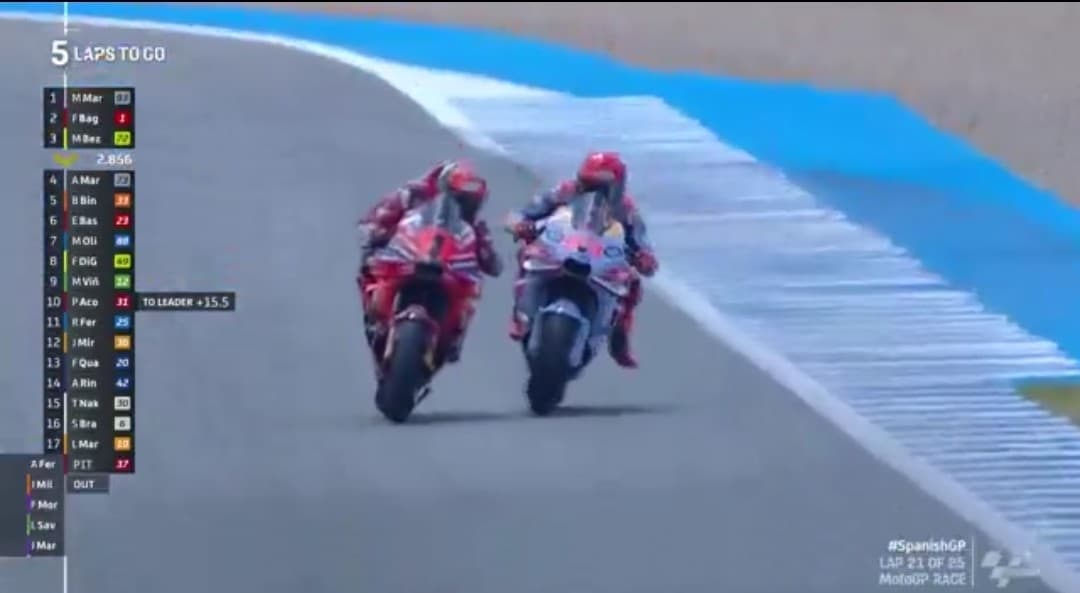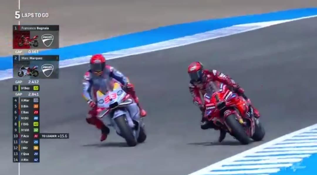 Pecco e Marc hanno infiammato il finale di Jerez de la Frontera con tanti sorpassi e un lieve contatto a pochi giri dalla fine