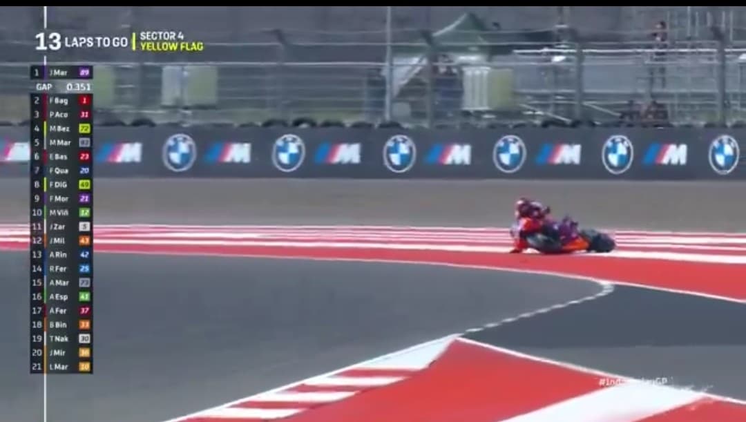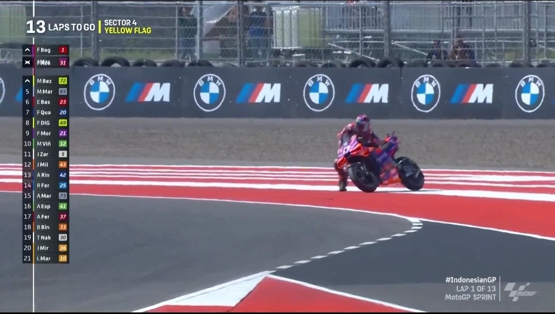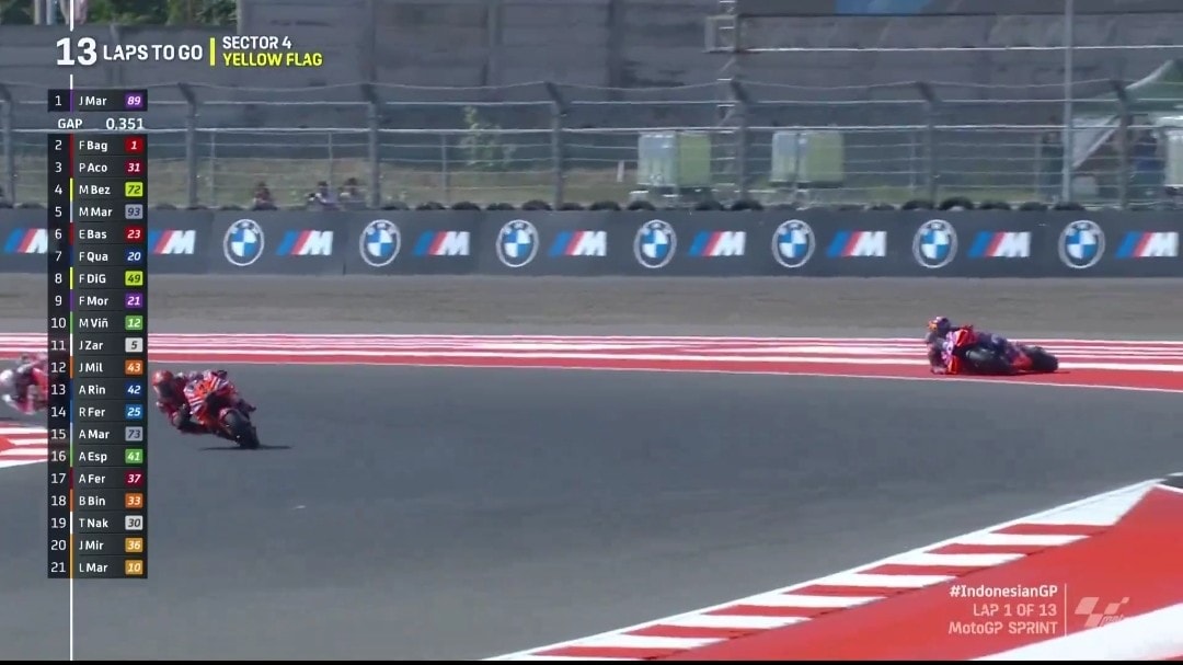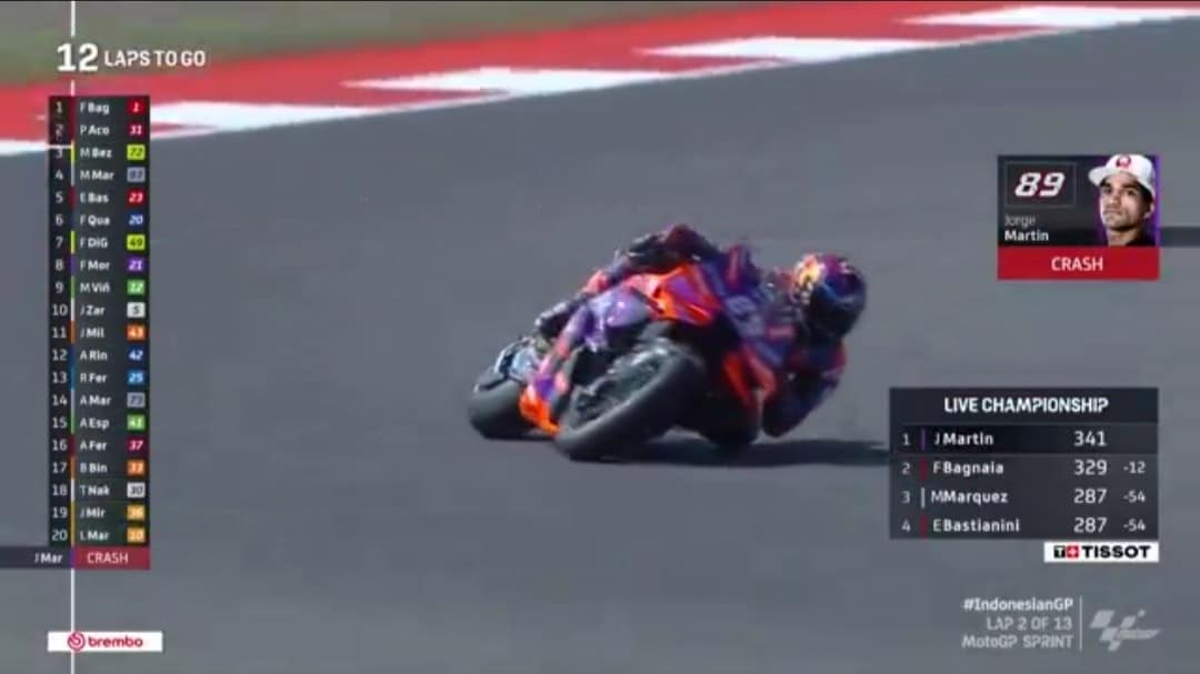 MotoGP Indonesia: Jorge Martin cade e fa un regalo a Pecco Bagnaia