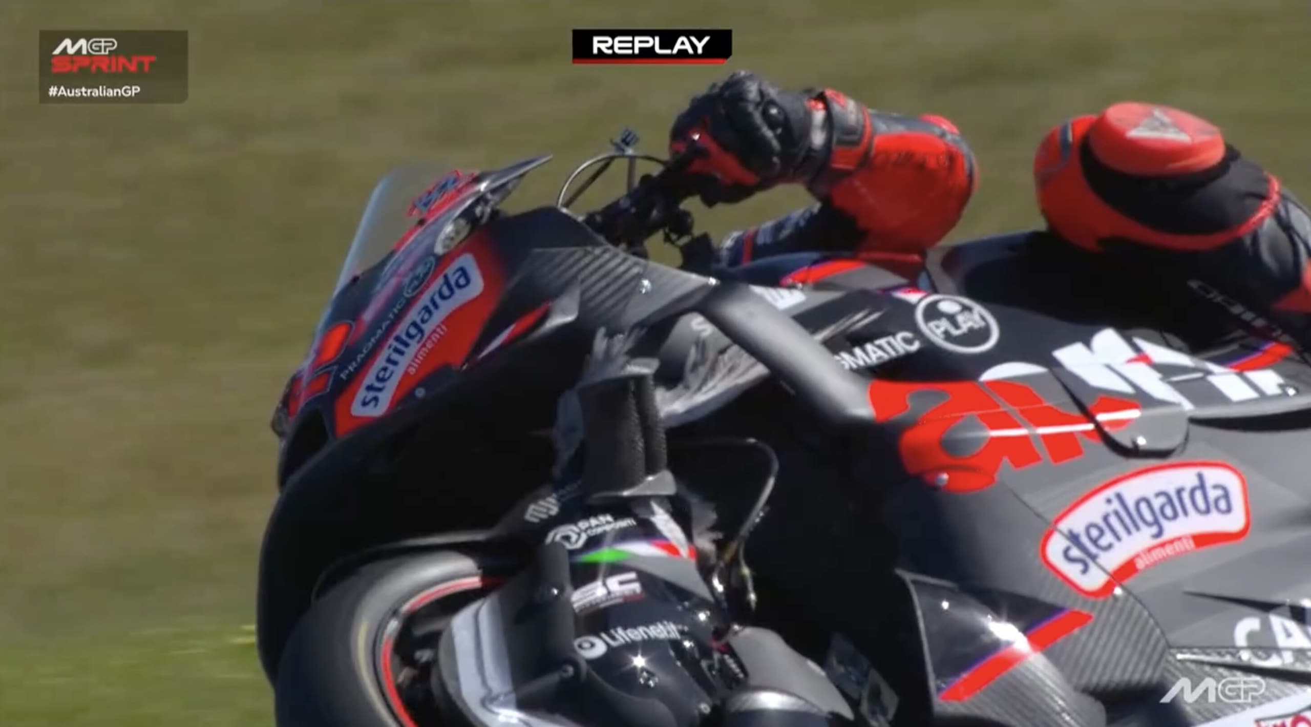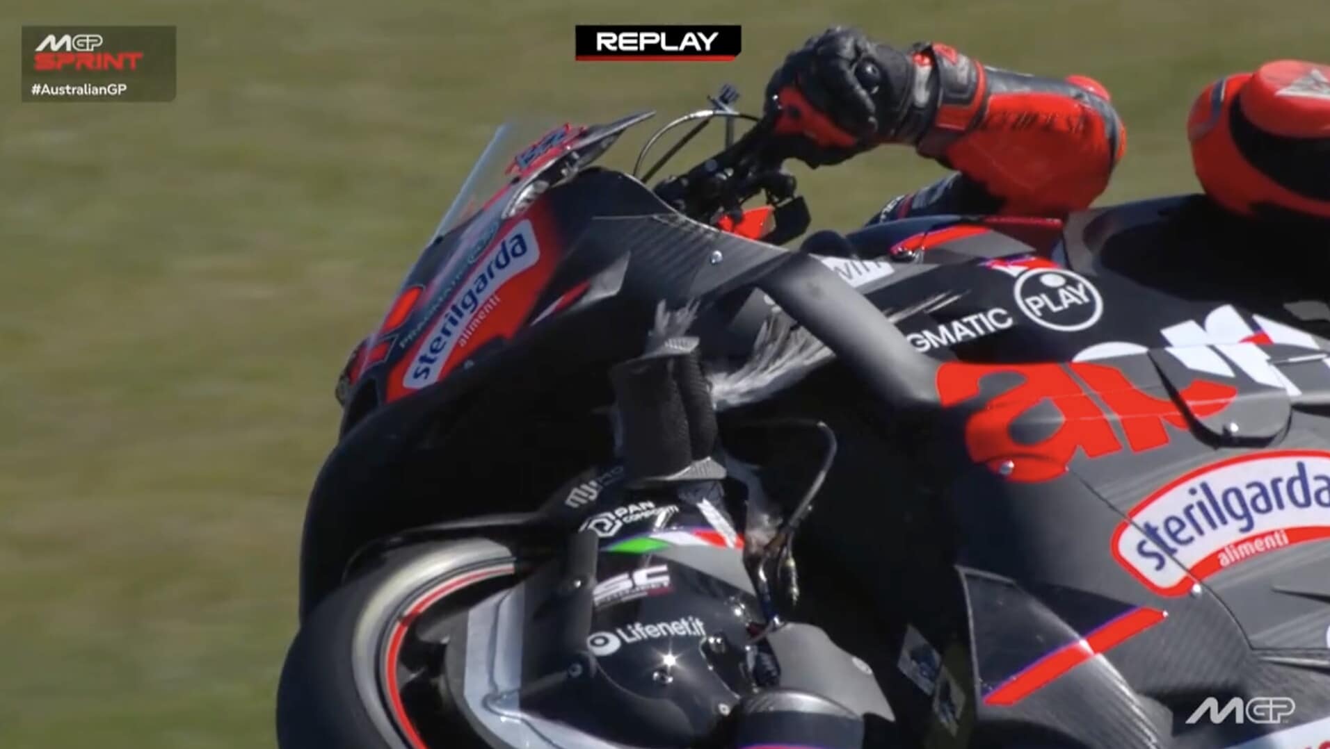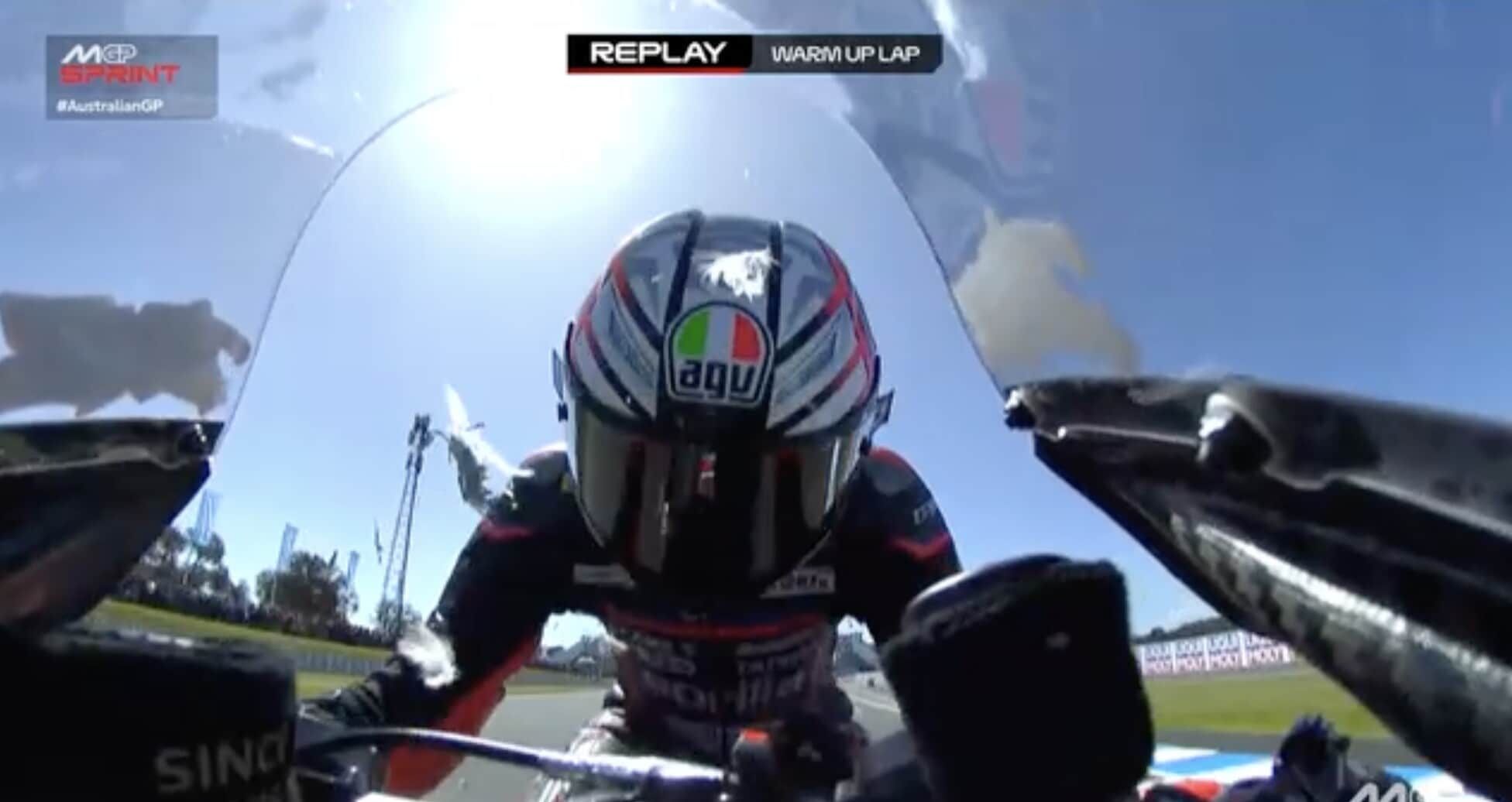 Come successe già in passato con Andrea Iannone, anche il romagnolo di Aprilia ha colpito inavvertitamento un gabbiano nel warm up lap della Sprint australiana