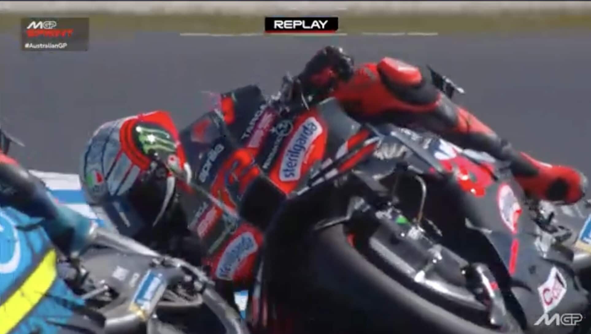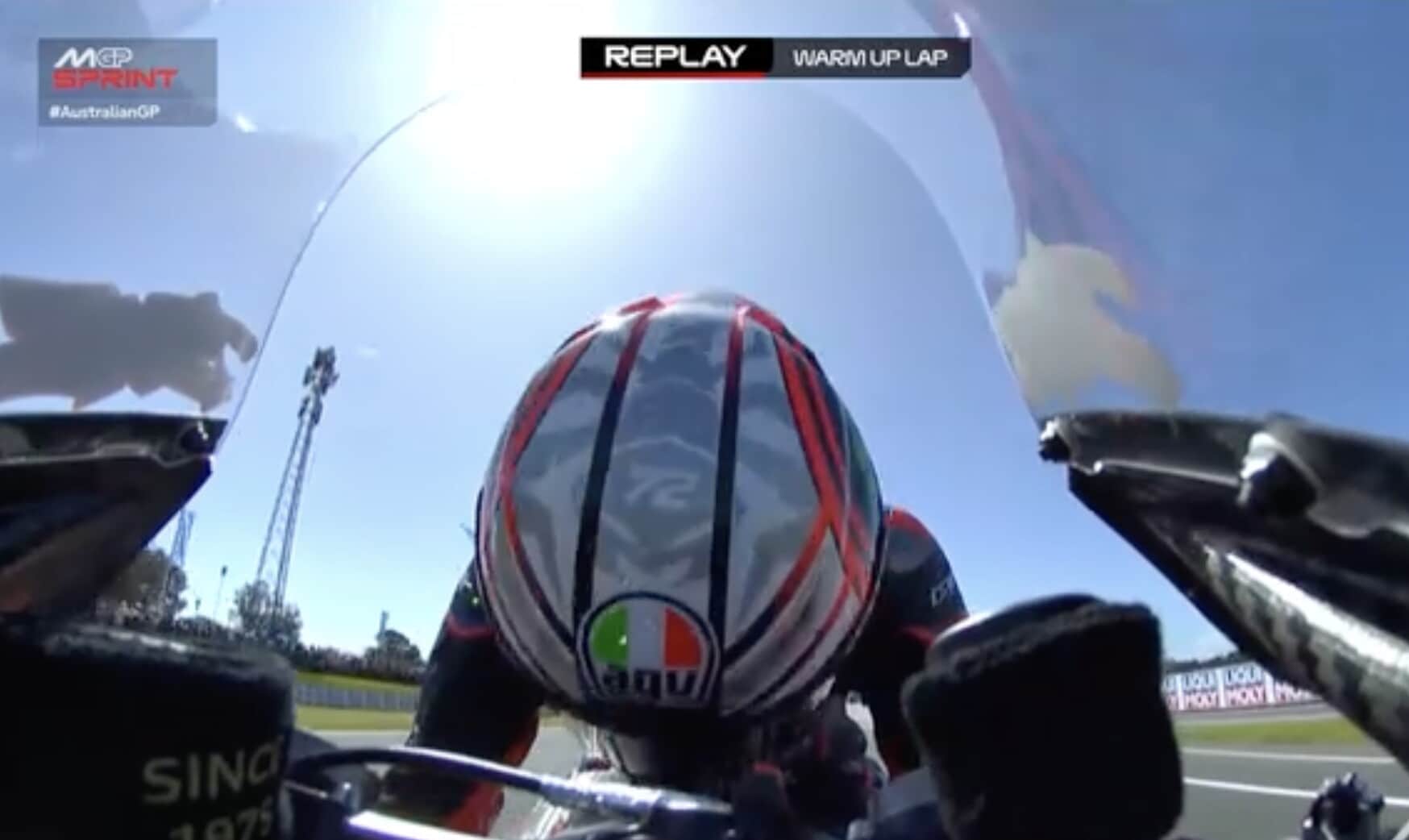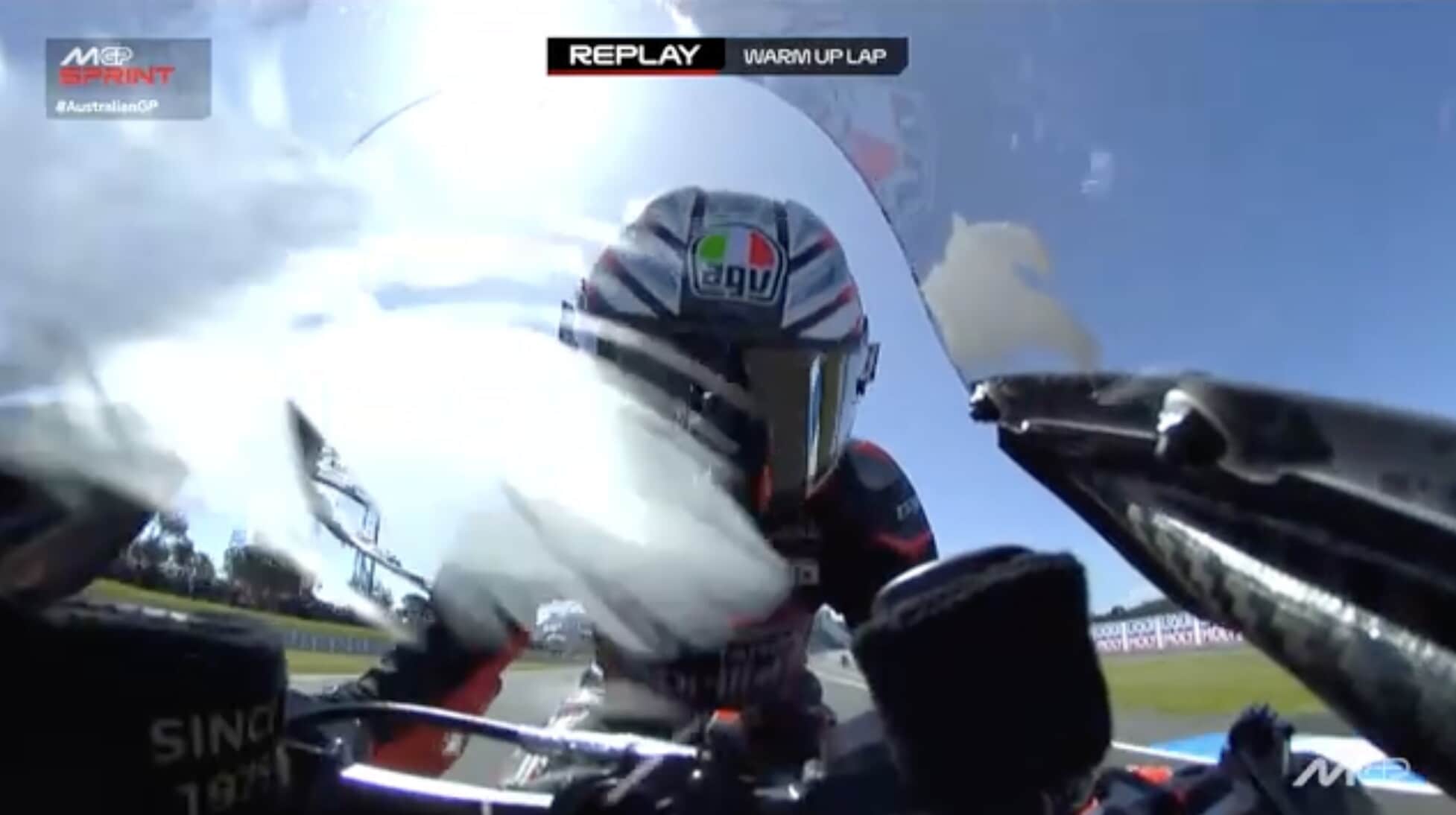 Come successe già in passato con Andrea Iannone, anche il romagnolo di Aprilia ha colpito inavvertitamento un gabbiano nel warm up lap della Sprint australiana