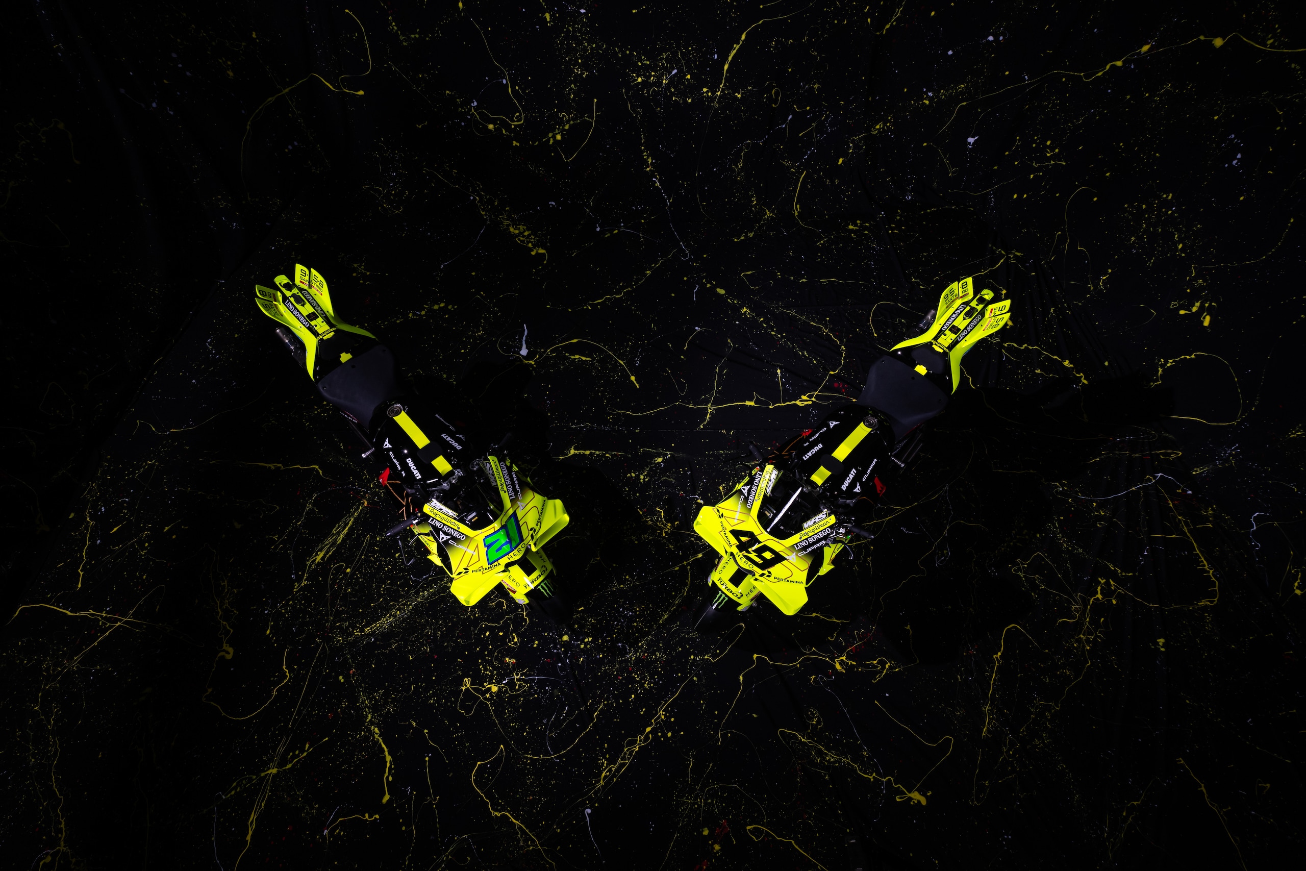 Seguendo la filosofia del “black and light”, la squadra di Valentino Rossi si è presentata a Roma in grande stile. Rispetto al bianco degli ultimi due anni, le Ducati di Fabio di Giannantonio e Franco Morbidelli saranno prevalentemente nere