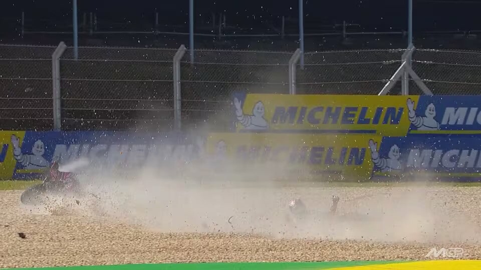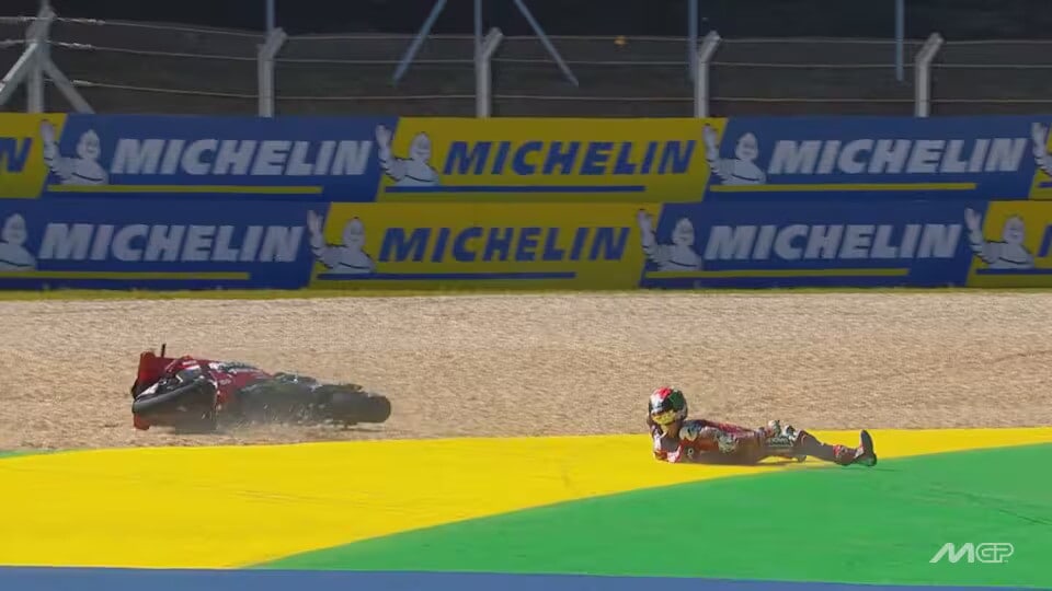 MotoGP Brasile, le foto dell'incredibile caduta di Bagnaia: i dettagli
