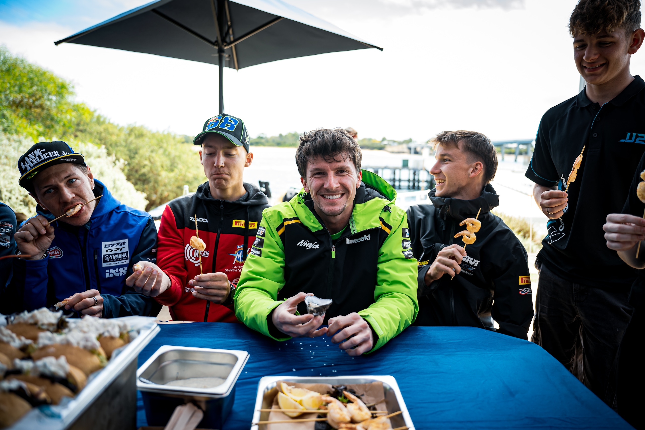 Prima di tornare alla guida delle loro moto, sei piloti hanno avuto l'occasione di ritrovare l'adrenalina su gommoni a motori con tanto di impennate