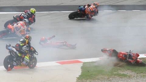 Nell'incidente multiplo sono finiti giù in sincro Alex Marquez, Fabio Di Giannantonio, Johann Zarco, Marco Bezzecchi ed Enea Bastianini. Proprio il numero 23 del team Lenovo Ducati ha rimediato l'infortunio peggiore, con caviglia e mano rotte, bisognose di intervento chirurgico.