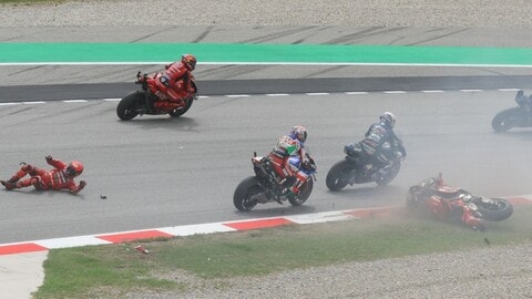 Caduta "provvidenziale" nel primo giro della MotoGP di Catalunya