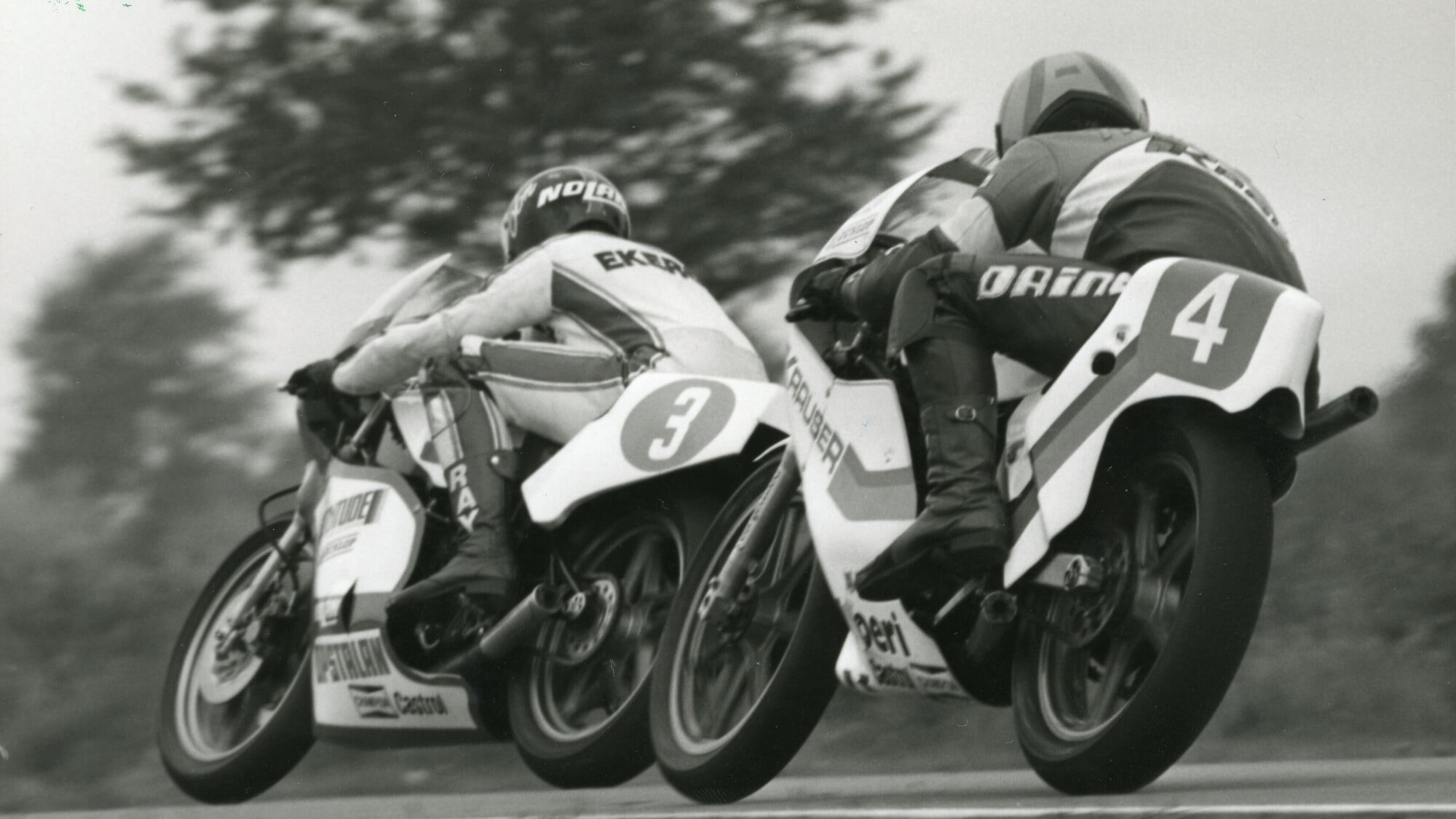 Mang giocava in casa e le conosceva bene, quelle curve, ma Ekerold non aveva paura nemmeno del demonio. Ed era molto arrabbiato. Alla gara precedente, il GP Cecoslovacchia, si era presentato con parecchi punti di vantaggio e sperava di chiudere i giochi in anticipo, ma i suoi meccanici Gregg Irvine e Keith Petersen si erano visti rifiutare l’ingresso nel Paese perché sudafricani, e lui stesso aveva potuto passare la frontiera soltanto grazie al passaporto norvegese, ottenuto per via del padre. Orfana di meccanici, la sua moto a metà gara aveva cominciato a perdere potenza e Jon era sceso dalla prima alla decima posizione; Mang aveva vinto e adesso si trovavano alla pari. Con la differenza che la Kawasaki-Krauser ufficiale del tedesco aveva più motore della Yamaha-Bimota privata.