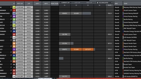 Inizio positivo per il campione del mondo in carica, mentre il suo compagno di box Enea Bastianini ha dovuto fare i conti in mattinata con un problema tecnico, che ha di fatto rallentato il suo piano di lavoro. Tornando alla classifica un sorprendente Fabio Di Giannantonio – caduto in curva 10 senza conseguenza – occupa la terza piazza, seguito da Jorge Martin. Lo spagnolo, esattamente come il compagno Johann Zarco, sta utilizzando la nuova carena con lo scalino, mentre nel team ufficiale di Borgo Panigale proseguono le comparazioni.