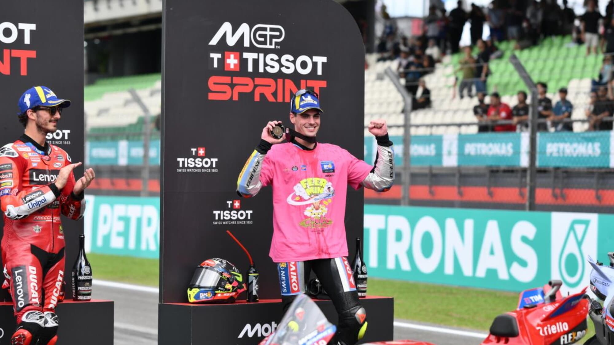Al termine della Sprint Fermin Aldeguer ha festeggiato il titolo “rookie of the year” in MotoGP. Il pilota di Murcia con una vittoria, nel GP di Indonesia, e sei podi tra Sprint e GP, si è contraddistinto alla guida della sua Ducati del team Gresini e oggi in Malesia può raccogliere la sua prima grande soddisfazione in top class.