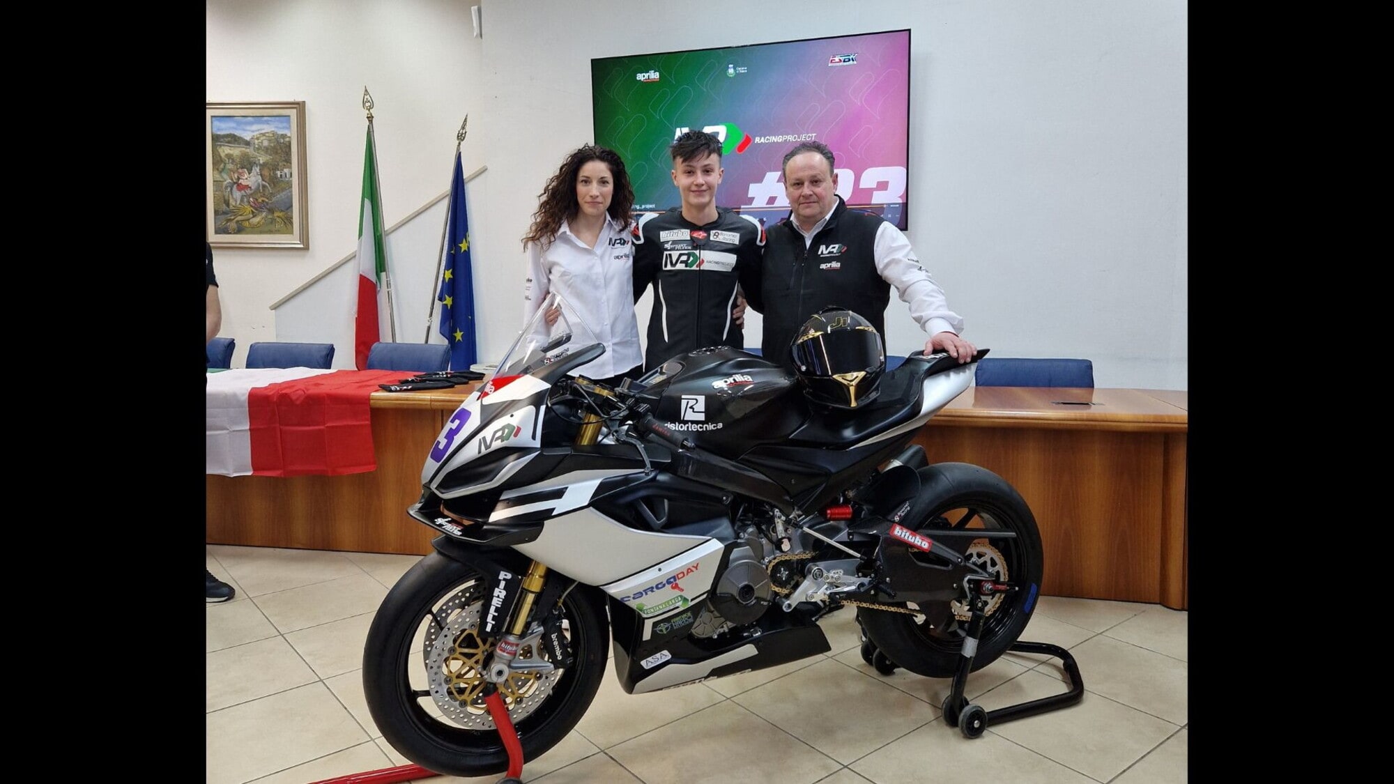 Nella sala consiliare del Comune di Riano è stato presentato ufficialmente l’IVR Racing Project, squadra pronta a intraprendere una nuova avventura internazionale nel campionato spagnolo ESBK. Il team sarà impegnato nella categoria Sportbike con la Aprilia RS 660 guidata dal giovane talento umbro Luca Maria Casagrande Contardi, diventando al momento l’unica formazione italiana a schierare moto e pilota tricolori nella serie.