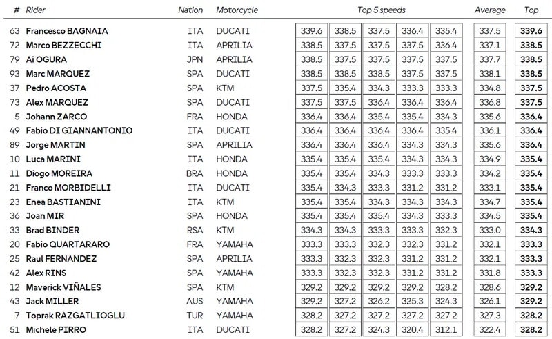 MotoGP, ecco i dati delle velocità massime fino ad ora