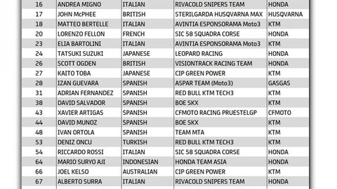 Entry list Moto3: su 30 piloti, sono sette gli italiani in pista nel 2022