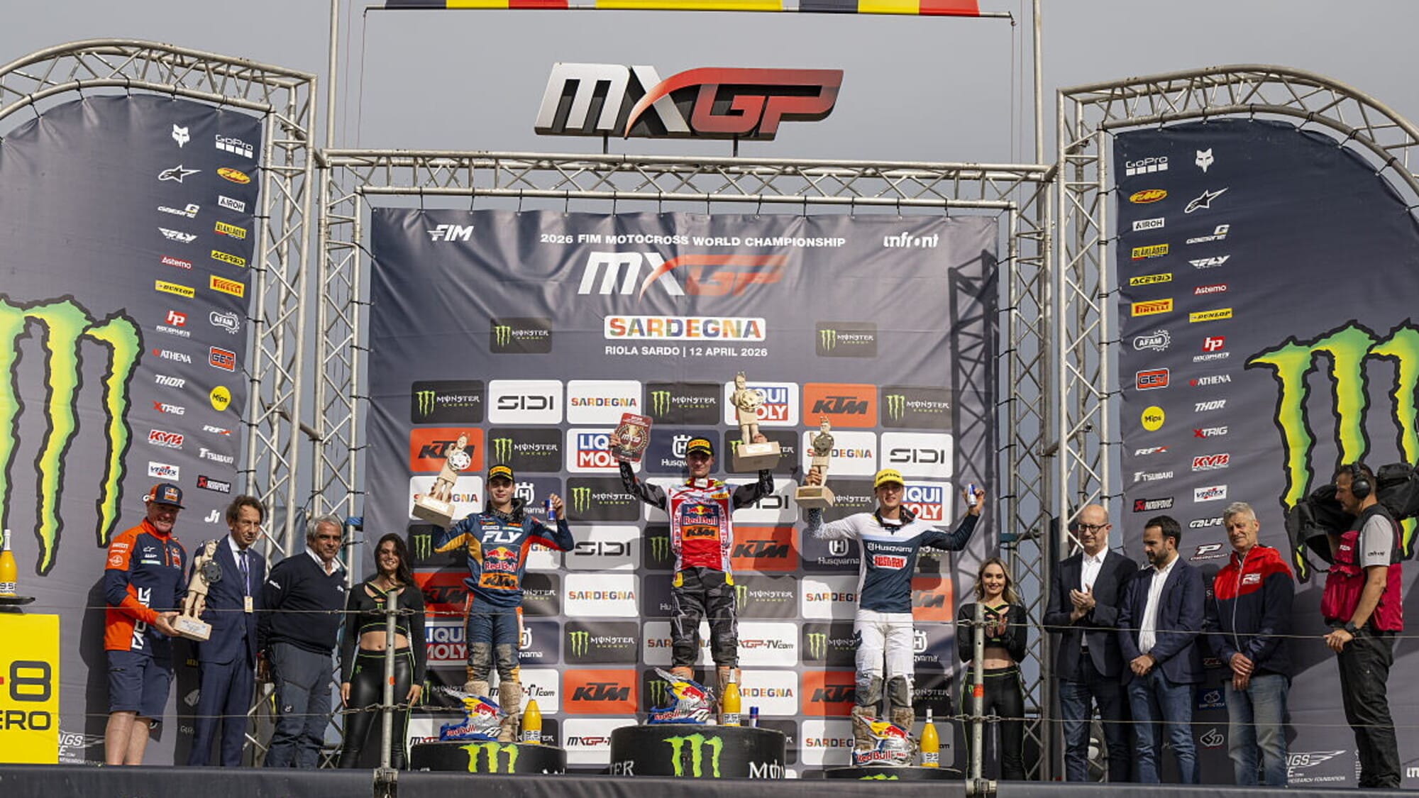 Difficile la giornata degli azzurri, con Valerio Lata (Honda), appiedato in gara due e 10° nella prima manche, per un 15° assoluto che gli va stretto, mentre Ferruccio Zanchi (Ducati), è 9° in gara uno, prima che la sua moto lo lasci a piedi e addirittura 4° nella seconda, ma 14° sul traguardo dopo un finale reso complicato da una caduta. Per il toscano il rientro in gara in un GP dopo 11 mesi di assenza è comunque più che positivo. Discreta la prova di Andrea Rossi (KTM) 17° assoluto e a punti in entrambe le frazioni. A punti anche Lotte Van Drunen (Yamaha), Campionessa del Mondo della WMX, in gara per prepararsi all'esordio iridato.