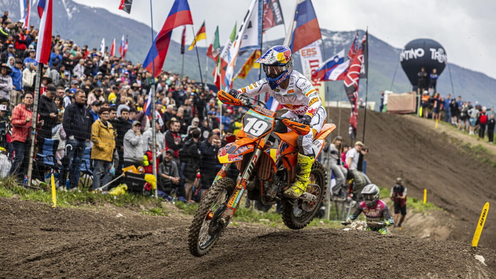 Questa volta invece Sacha vince gara uno e porta a casa la vittoria anche nella seconda frazione del Gran Premio del Trentino, facendo un balzo in classifica di campionato, dove ora si trova a soli 3 punti dalla tabella rossa, ancora nelle mani di Simon Längenfelder (KTM), alle prese con una giornata storta che lo vede 6° assoluto, con un 10° posto in gara uno e un 3° nella seconda. Il tedesco che fatica a trovare il feeling con la pista del Trentino perde terreno e vede la sua leadership messa in discussione dal compagno di marca belga.