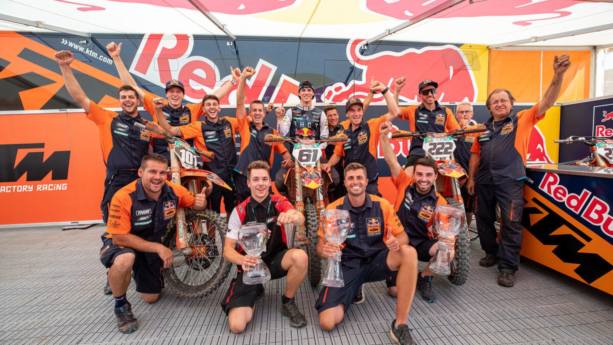 Davide De Carli, Team Manager: “Per noi è come un ritorno al futuro! È bello tornare in KTM e riunire di nuovo due strutture forti. Non abbiamo mai smesso di spingere per le vittorie e i podi ai massimi livelli dello sport, indipendentemente dal pilota, ma abbiamo anche aiutato i piloti più giovani o inesperti a trovare la loro strada nei GP. È una linea che siamo entusiasti e motivati ??a seguire. Vogliamo consegnare altri titoli a KTM.” Pit Beirer, KTM Motorsports Director: "È fantastico per noi riportare Davide, Claudio e tutto il loro staff nei colori arancioni. Il loro record come team è quasi imbattibile e conosciamo molto bene il loro stile di lavoro e la passione che hanno per lo sport. Riportare De Carli nei colori Red Bull KTM significa che siamo in una posizione ancora più forte in MXGP.”