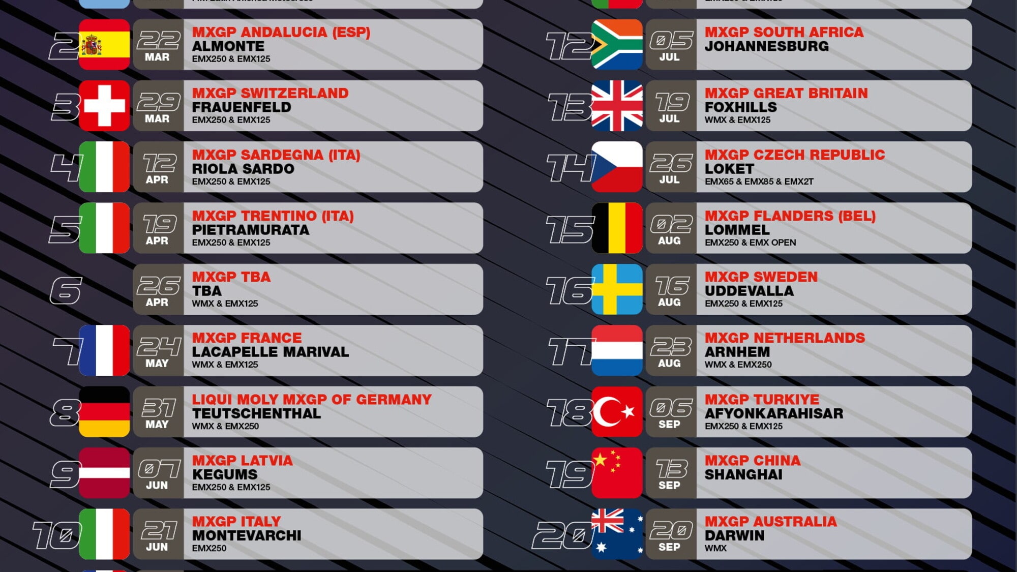 Il Calendario 2026 della MXGP aggiornato al 22 dicembre 2025