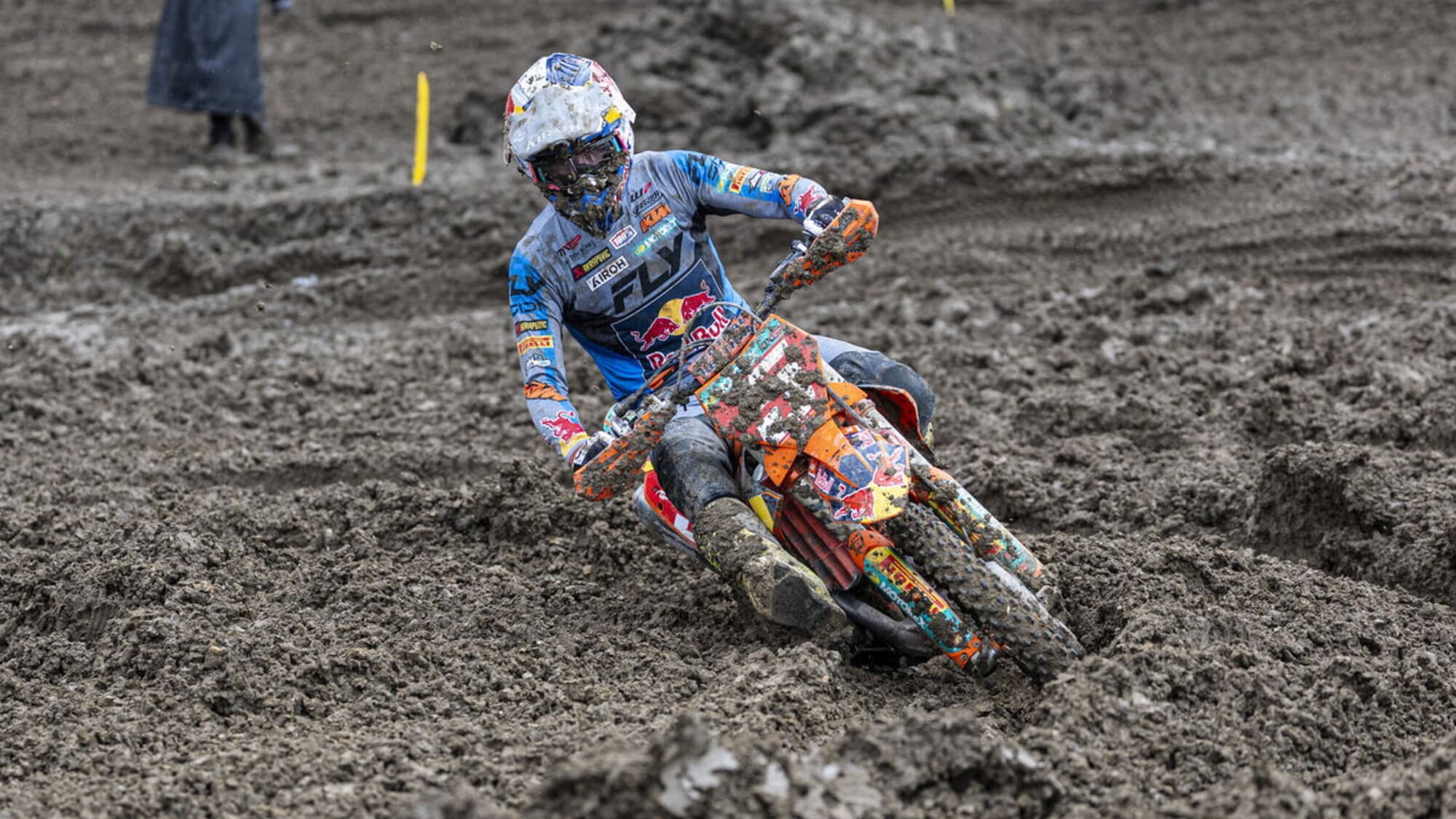 Gara a eliminazione nella classe regina, con Coenen ed Herlings che perdono la catena in un canale e fanno zero punti. Il francese vince e si porta in testa al mondiale