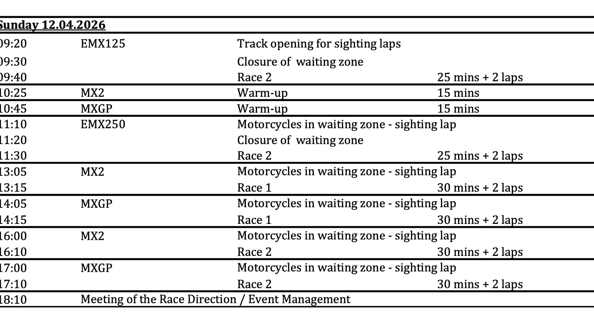 Domenica 12 aprile 2026 – Gara 2 MX2 – 00:15 CET – Differita