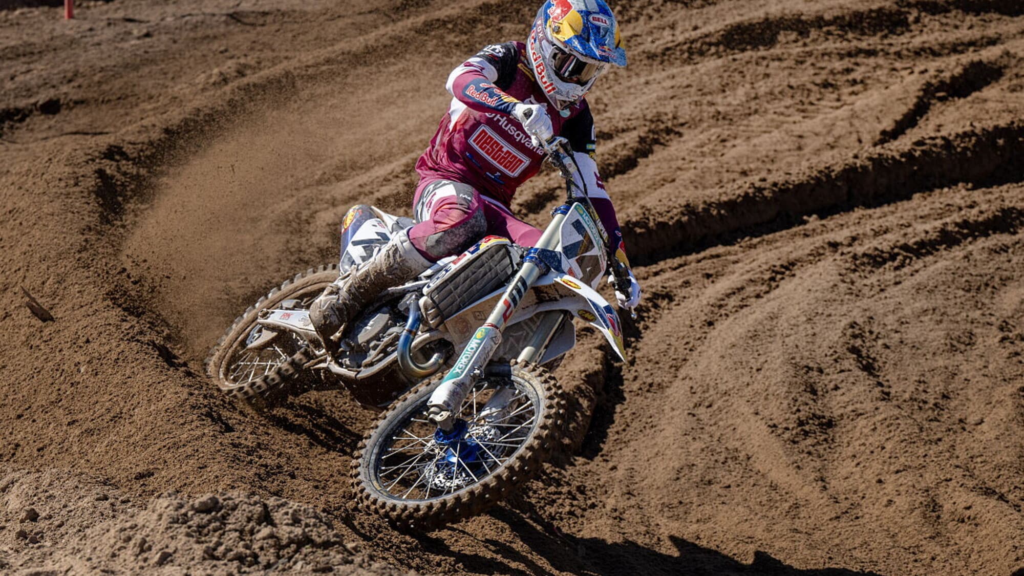 Alle sue spalle Jeffrey Herlings (Honda) questa volta non perde vistosamente terreno come in gara uno e cerca di mantenersi a tiro del rivale che gira comunque costantemente meglio di tutti. Romain Febvre (Kawasaki) in terza posizione per oltre metà gara, ingaggia un bel duello con il connazionale Tom Vialle (Honda) che lo passa per due giri, prima di cadere, ripartendo sesto. Febvre potrebbe approfittarne ma sbaglia anche lui e viene superato a sua volta da Kay de Wolf (Husqvarna) che conquista la terza piazza definitivamente.
