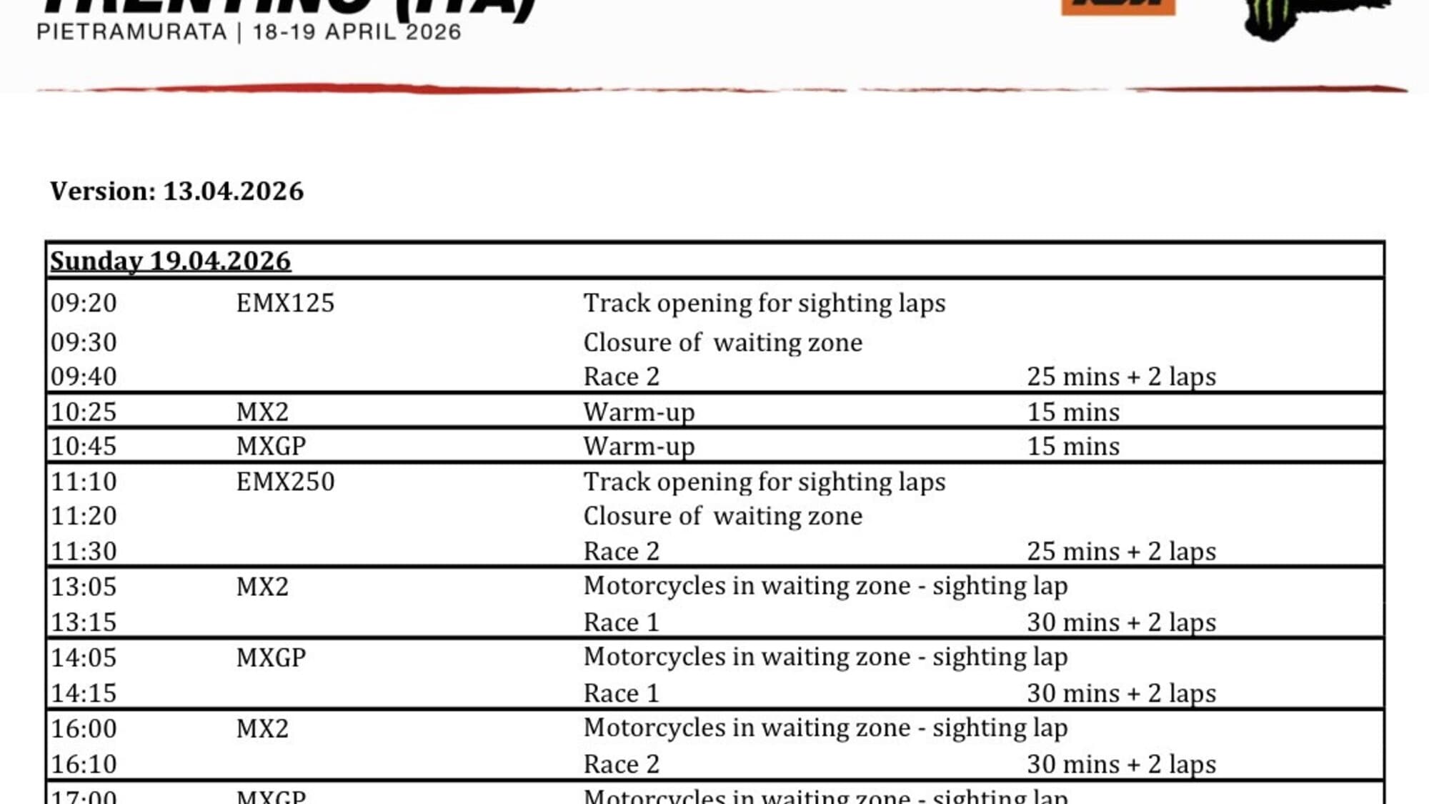 Poca la copertura mediatica riservata dalle emittenti televisive italiane al Gran Premio del Trentino, seconda delle tre prove del Campionato del Mondo FIM di Motocross che si terranno in Italia quest’anno, con la sola Rai Sport che trasmetterà le seconde manche di MX2 ed MXGP dal vivo. Come sempre però, gli appassionati di MXGP potranno seguire le gare in DIRETTA per tutto il weekend. Basterà collegarsi a www.MXGP-TV.com sabato e domenica, ovunque vi troviate nel mondo e acquistare il pacchetto desiderato.