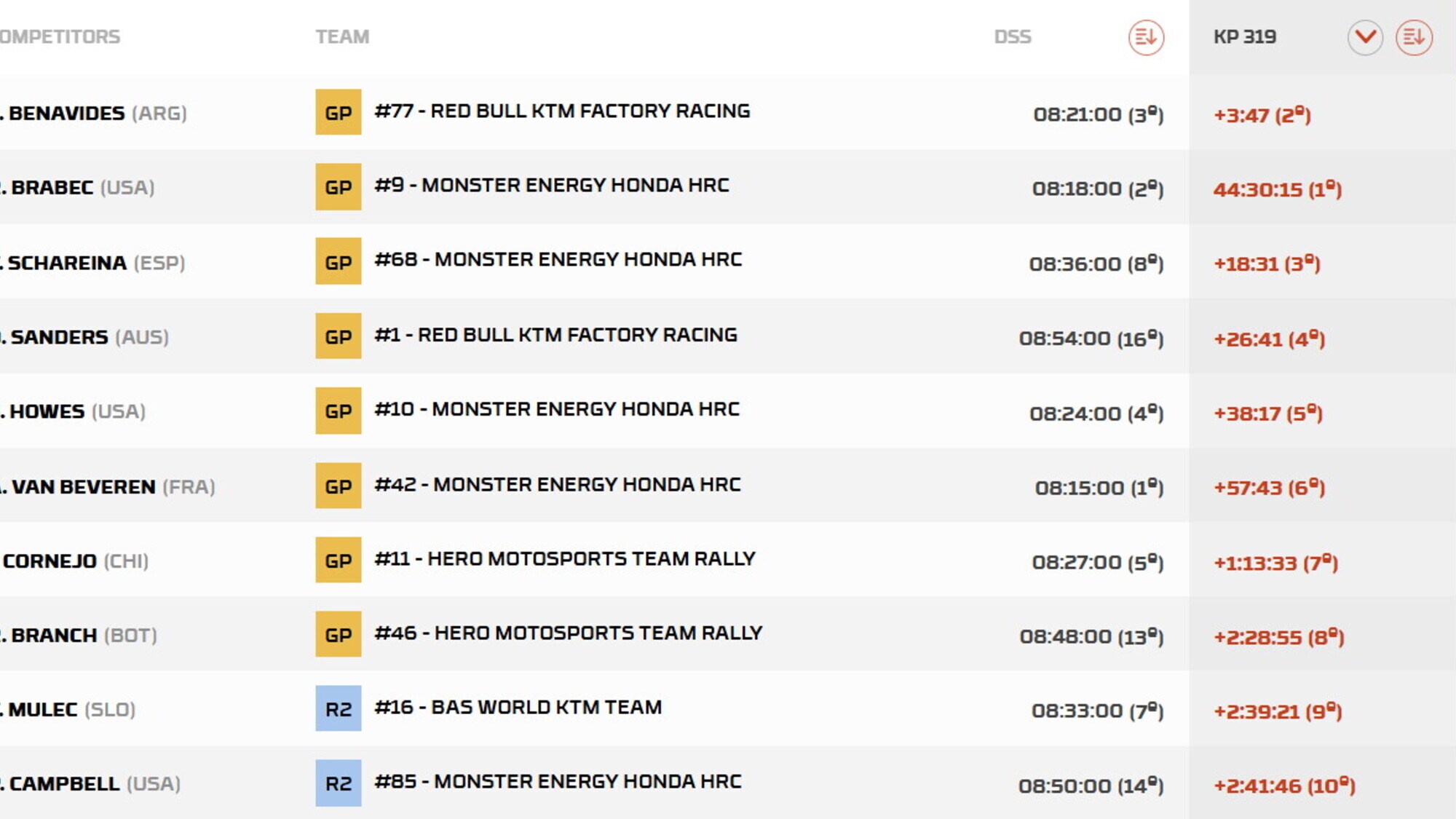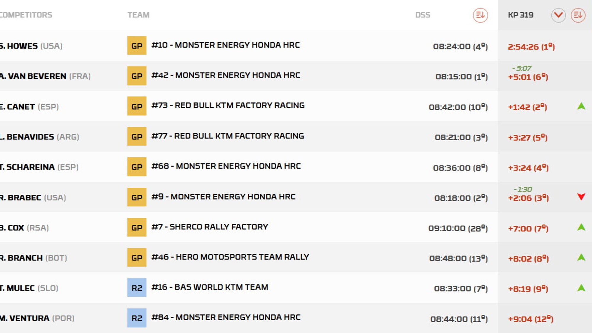 La tappa che ha portato i piloti della Dakar da Bisha a Al Henakiyah è stata a tinte rossonere con le Honda CRF 450 Rally di Skyler Howes e Adrien Van Beveren davanti alla coppia KTM composta da Edgar Canet e Luciano Benavides che però si riprende la leadership della generale.