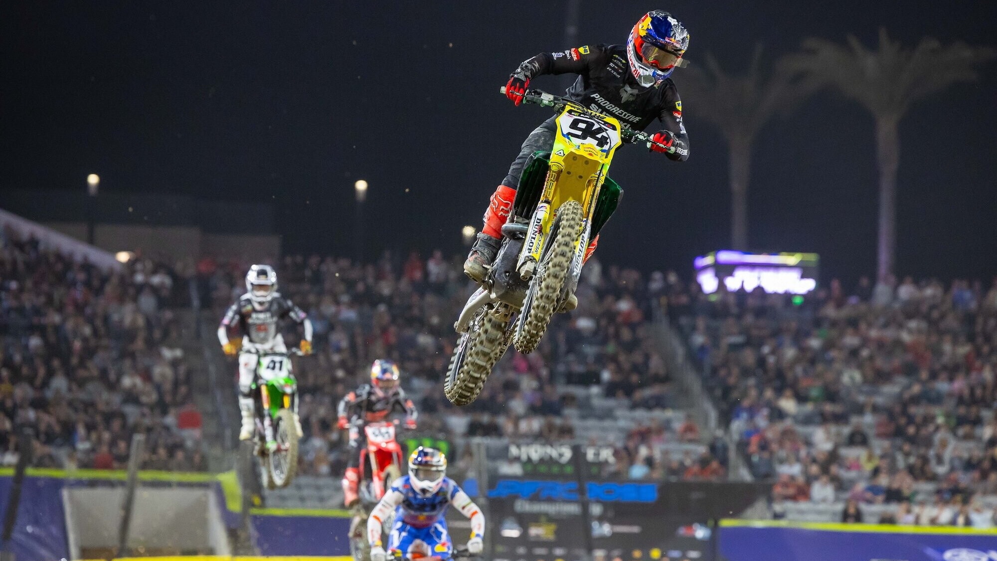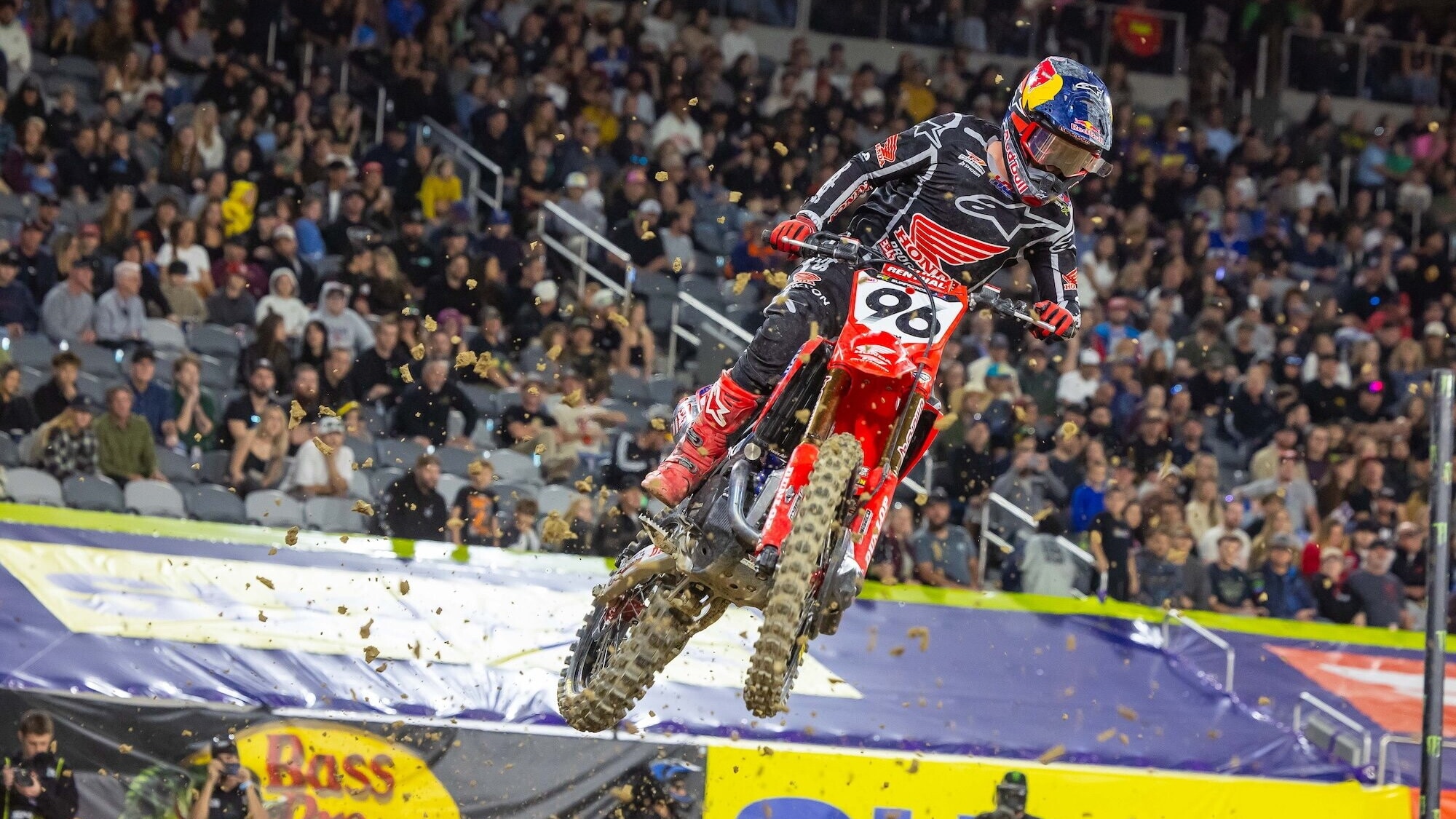 San Diego regala ancora una volta una serata magica con un Main Event a dir poco memorabile che vive sul duello per il podio tra Eli Tomac (KTM), Hunter Lawrence (Honda) e Ken Roczen (Suzuki), mentre Jorge Prado (KTM), reduce dal primo podio in carriera ad Anaheim 1, secondo in prova e in qualifica, non va oltre un 13° posto che ridimensiona le sue ambizioni.