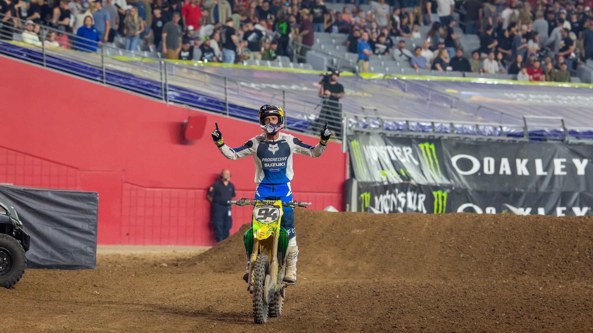 Ken Roczen (Suzuki): “Sembra irreale. Sono partito bene e poi Friese mi ha tagliato la strada alla prima curva, come mi aspettavo, il che ha rallentato un po' il mio slancio. [Alla fine] sono riuscito a superare Hunter [Lawrence] e sapevo che sarebbe stata una Finale lunga perché cercare di creare un distacco [sul gruppo] era davvero difficile e la pista era insidiosa. Era velocissima e tutto era costruito in modo molto alto. Sono davvero felice. Voglio dedicare questa vittoria in particolare a Larry [Brooks]. Non è potuto essere qui con noi nelle ultime gare. Ci spezza il cuore. Ama questa gara più di chiunque altro. Questa vittoria è per lui.”