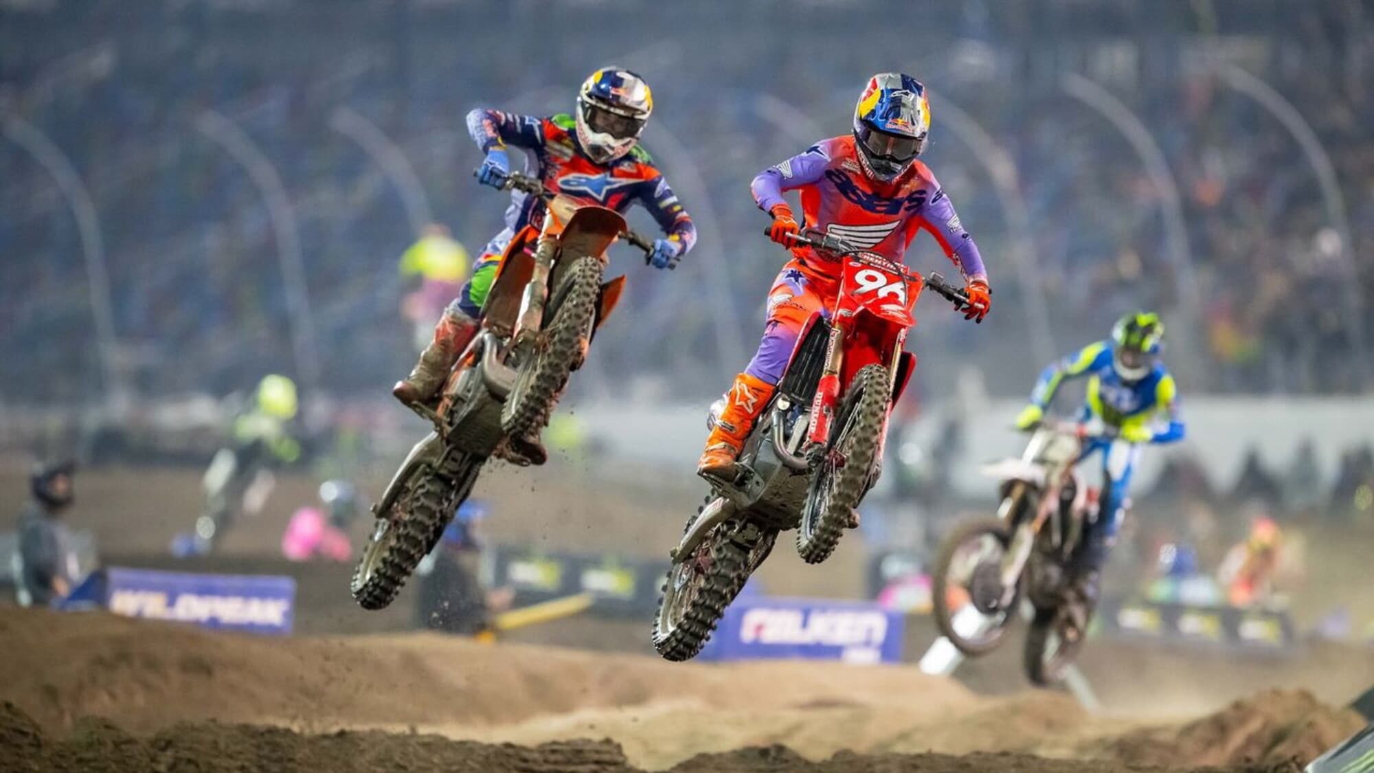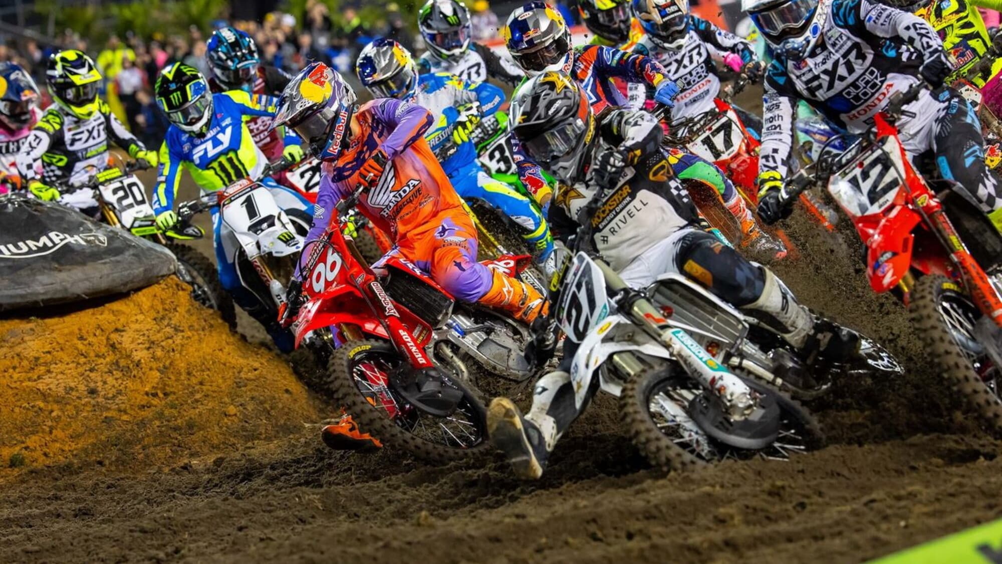 Tiene bene Hunter Lawrence (Honda) che seppur di un solo punto si tiene stretta la tabella rossa conquistata a Glendale. L’australiano, più veloce di tutti in qualifica, precedendo proprio il pilota del Colorado, firma l’hole-shot nella Heat 2 e porta a casa il successo in attesa del Main Event, dopo che Tomac, in gara nella Heat 1, aveva fatto la stessa identica cosa, chiudendo davanti a Cooper Webb (Yamaha) e al vincitore del 2025, Ken Roczen (Suzuki).