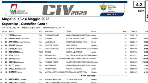 CIV SBK: classifica Gara 1 Mugello