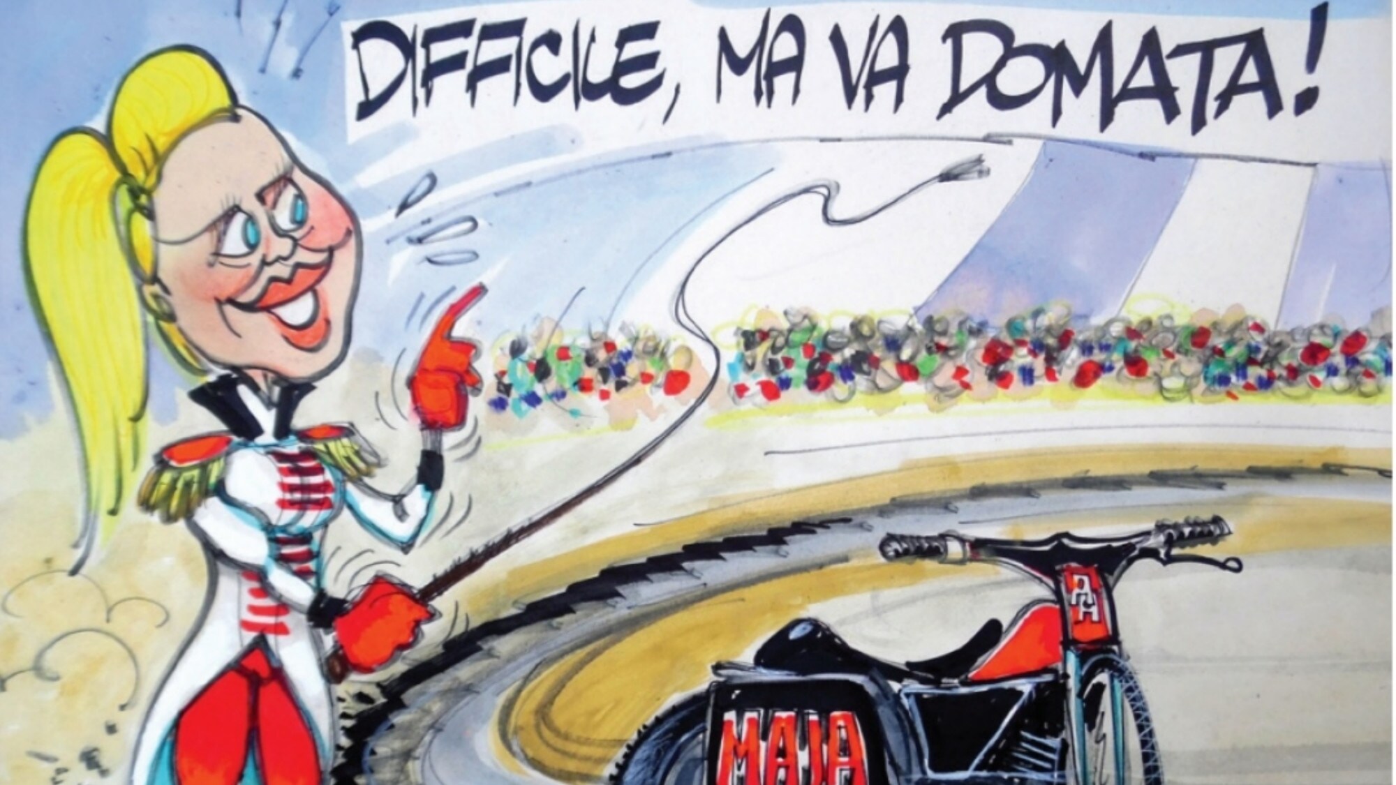 Moto nera con un tocco di rosa, così come la sua tuta: Maja abbassa la visiera e va a compiere i suoi traversi nell’ovale di terra battuta. Sempre con il sorriso, anche davanti a chi storce un po’ la bocca nel vedere un ciuffo di capelli biondi spuntare dal casco. Se ne faranno una ragione!