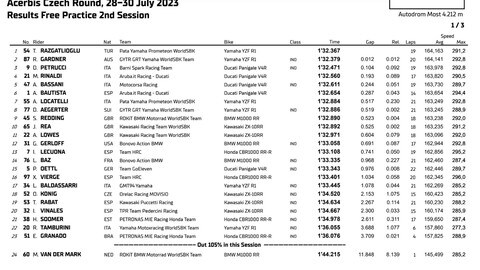 Splende il sole su Most, e dopo il maltempo della mattinata questa è già una notizia. L’altra notizia da copertina è la prima posizione di Toprak Razgatlioglu, recordman di vittorie a Most e subito molto veloce anche quest’anno. 1’32”367 il crono del turco, solo 12 millesimi più veloce di Remy Gardner, assoluto protagonista a sorpresa, considerata la sua inesperienza sul tracciato ceco.