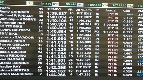 E Andrea Iannone? In scia al connazionale. Un inizio dunque positivo quello dell’abruzzese, autore di 26 giri – solo Rinaldi e Ray hanno girato di più – e di un 1’41”922 che lo pone a due secondi dalla prima piazza. Ovviamente i tempi sono ancora indicativi, ma i primi segnali sono incoraggianti. Da segnalare anche il debutto di Adrian Huertas con la V2 del team Aruba, con un 1’44”157 come miglior crono.