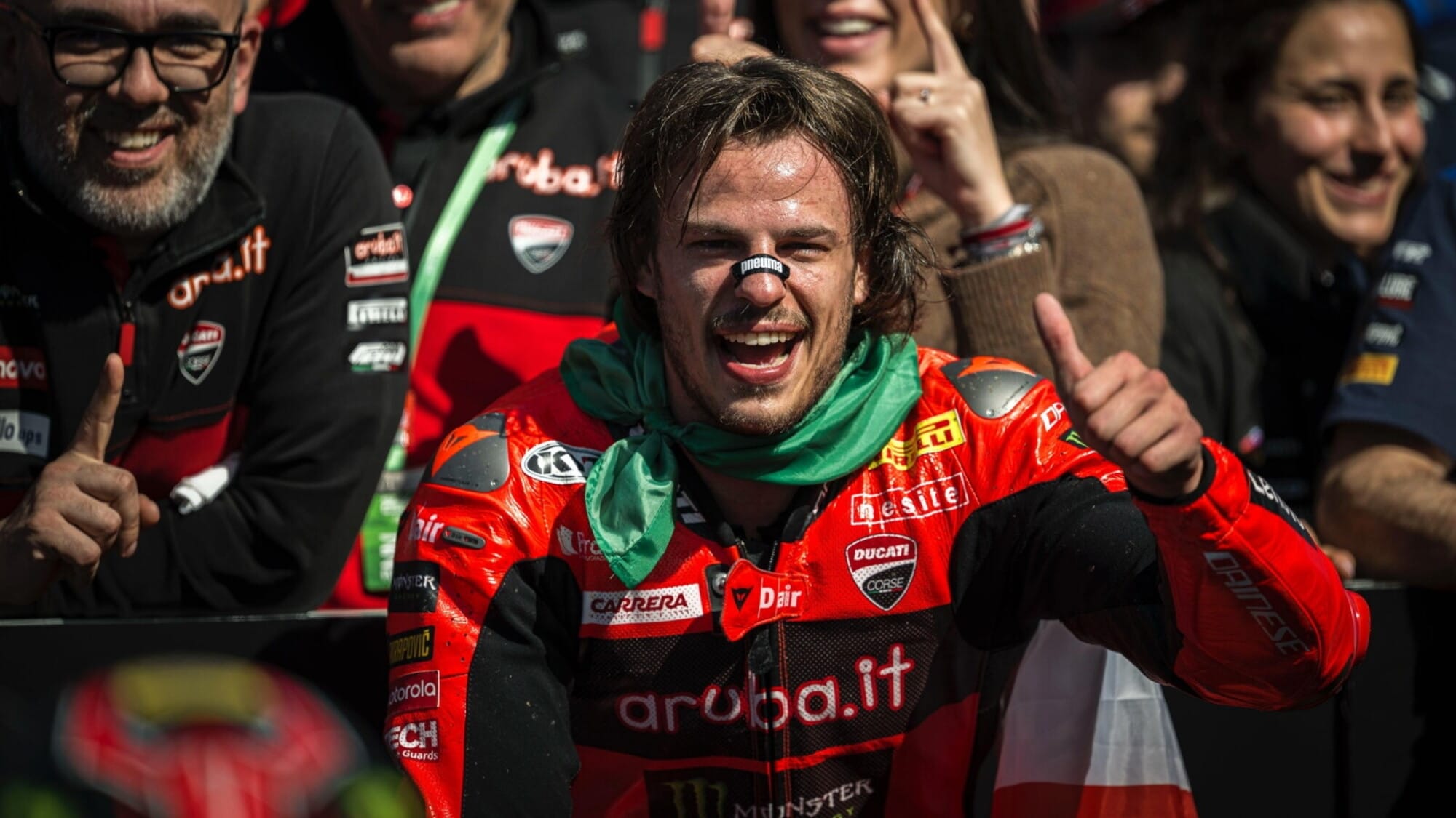 Bulega festeggia, dopo una Superpole dove invece il sentimento preponderante era stata la rabbia, dopo aver abortito il proprio giro veloce a causa del traffico.