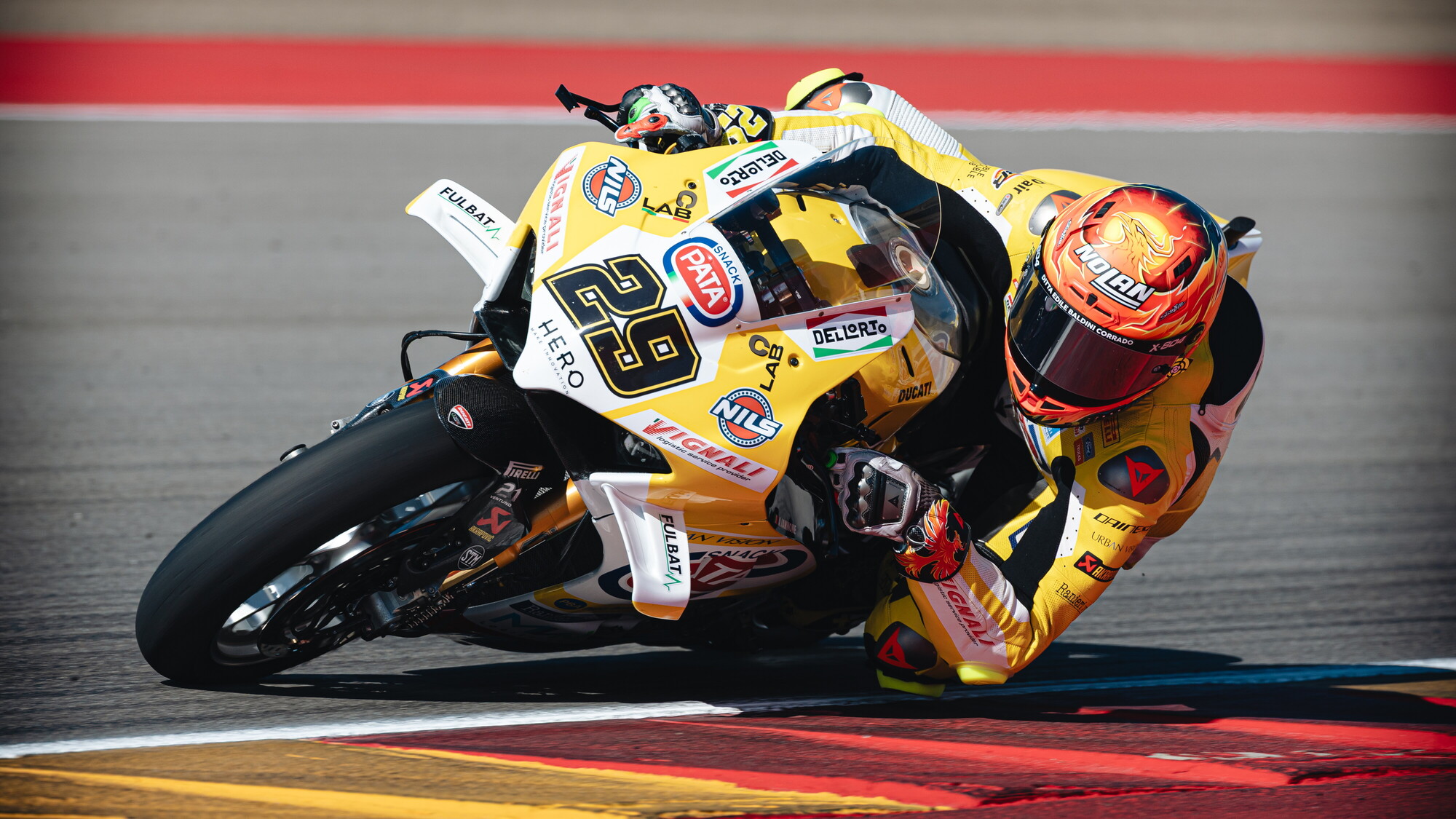 “Il ritmo nostro era quello di stare con Petrucci e Sam Lowes, ho fatto 49.2 49.4 per più giri di loro, purtroppo ho fatto tanti giri dietro Rea senza riuscire a superare. Nei rettilinei soffro molto, anche rispetto alle altre Ducati, cercheremo di capire perché. Avevo lo stesso problema a Magny-Cours. Al primo giro Danilo e Alvaro sono riusciti a fare dei sorpassi mentre io resto in scia e non supero, non riesco ad accelerare forte. Non è una lamentela, stiamo cercando di capire perché abbiamo questi problemi, oggi ho sbagliato anche qualcosa in qualifica che mi è costata almeno una fila. Da dove veniamo, con tutti i problemi che abbiamo avuto, un sesto posto va bene”.