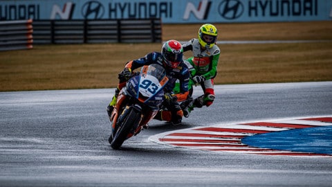Detto della caduta di Matteo Vannucci alla prima curva anche Dirk Geiger è incappato in una scelta sbagliata, rientrando troppo tardi per sostitutire la gomma uscendo dalla zona punti. A ringraziare sono infatti Petr Svoboda e Perez Gonzalez che così recuperano terreno portandosi rispettivamente in seconda e terza piazza iridata davanti al nostro Matteo Vannucci sempre lontano 17 punti dal tedesco della KTM.